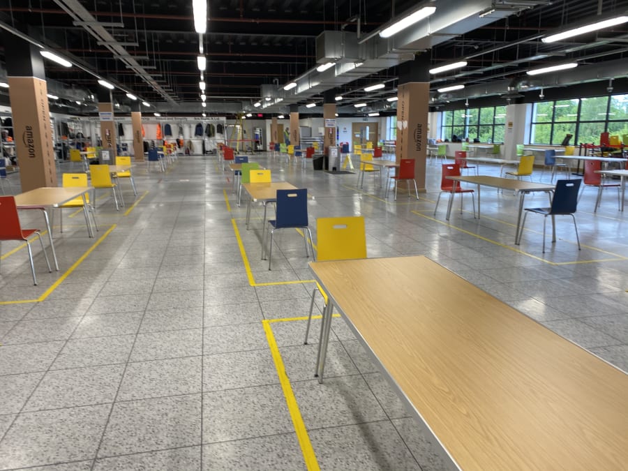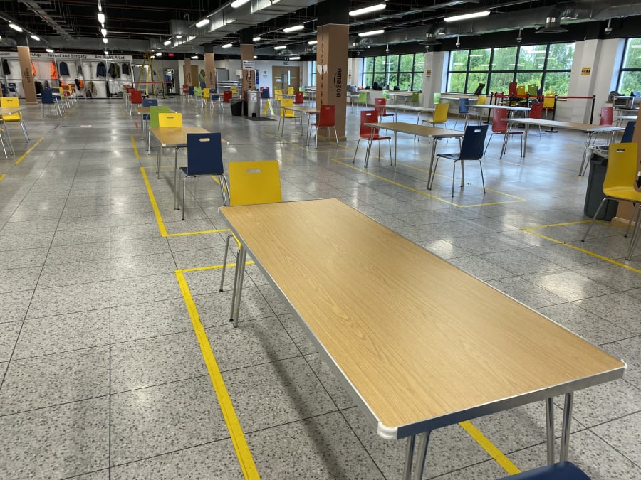 One of our larger clients who had come to us to set up a Covid Secure environment, hired a large number of tables. This allowed them to have space between employees and those testing employees.