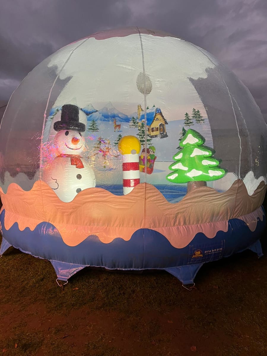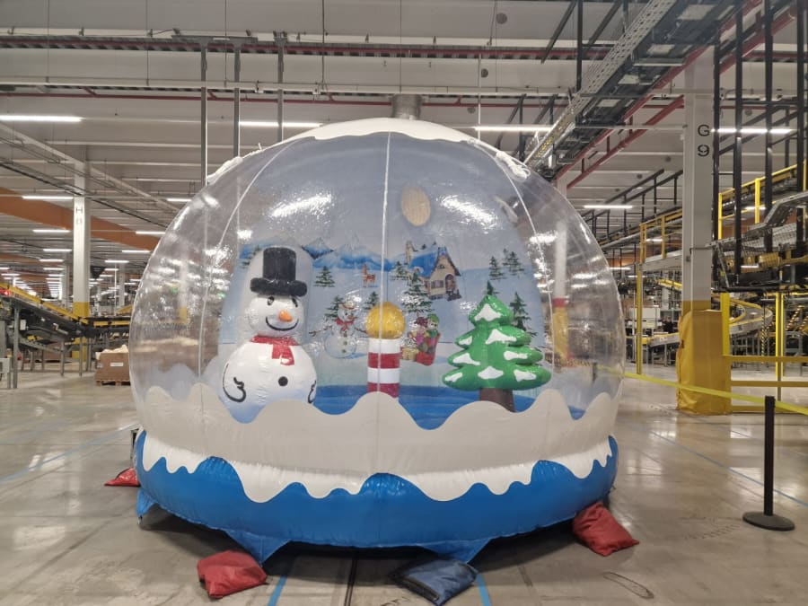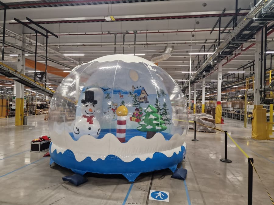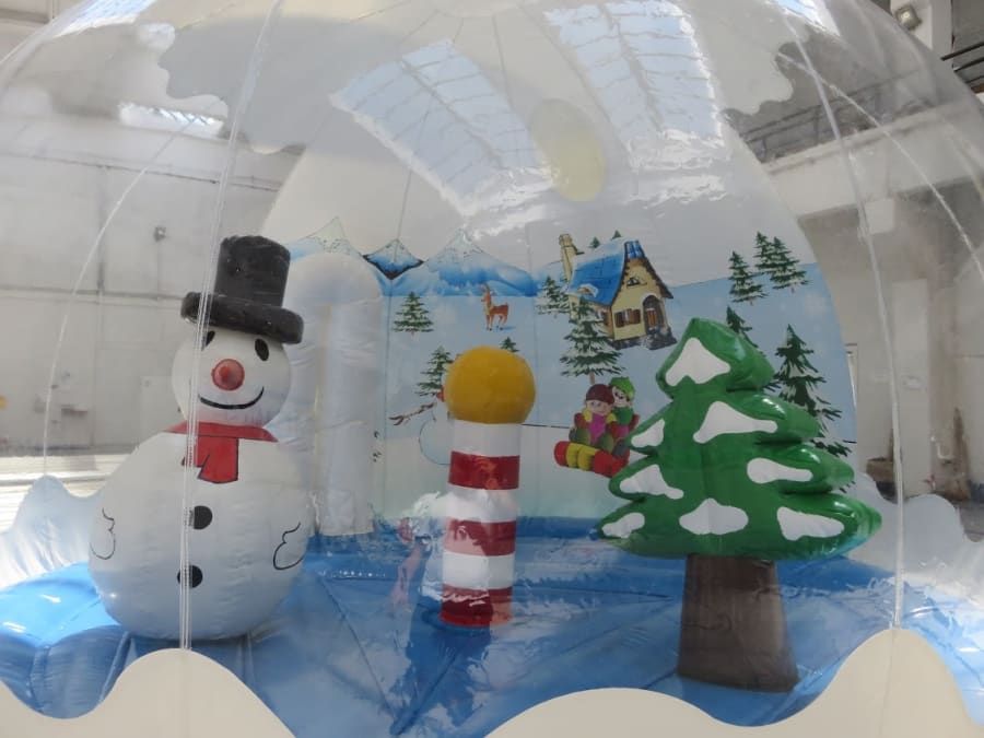 Here we have our inflatable Giant Snowglobe ideal for the perfect photo opportunity. The theme is set and we can even supply artificial snow to swirl inside this is great for any occasion including Christmas markets, corporate Christmas parties.
