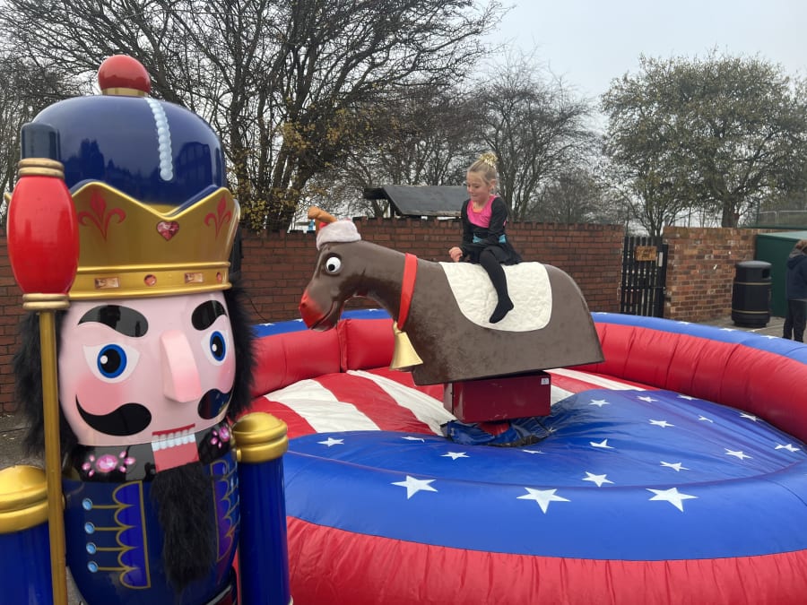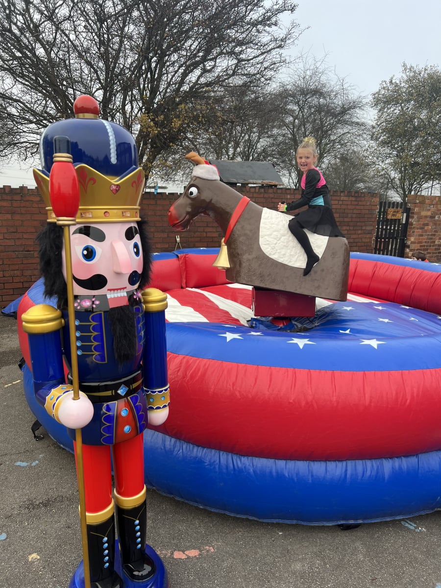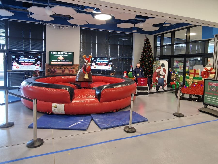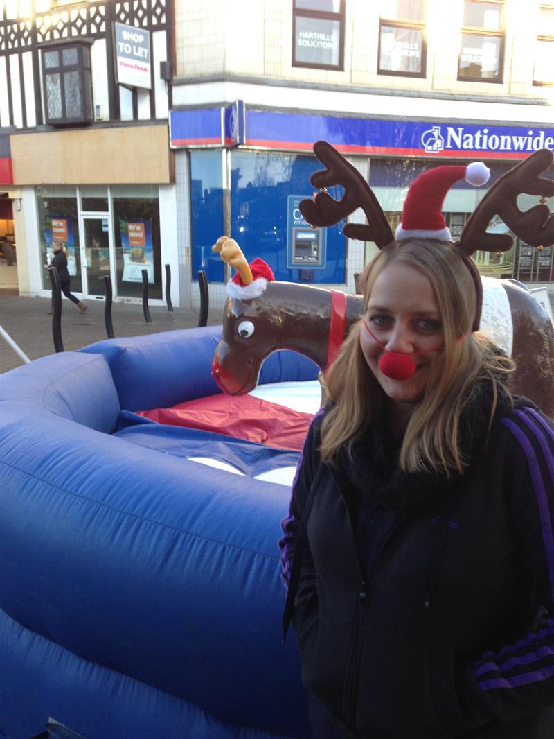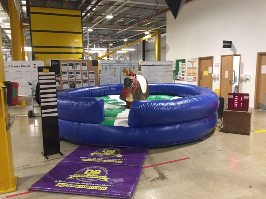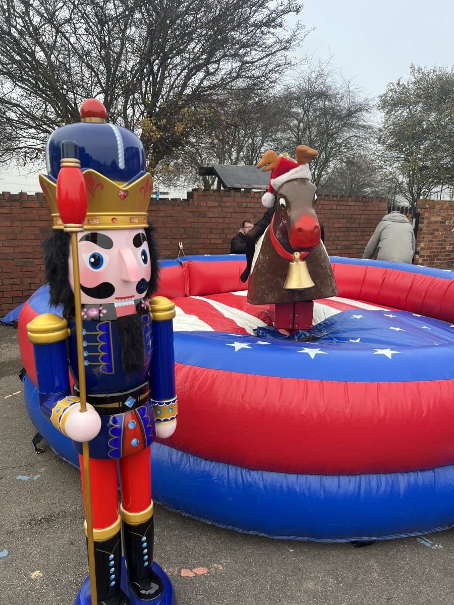 Based on a Rodeo Bull we bring the rodeo Reindeer which is a great attraction at any party. Our Rodeo Reindeers are perfect for office parties and Christmas parties. All ours come with our full experienced staff and come with a full digital timer so you can tell who’s the best Reindeer rider. We can even run competitions and give certificates out when requested. All Reindeers require access minimum of 3ft 3” and a setup clearance area of 16x16ft. The power requirements are 2 normal 13 amp plug sockets within 25m of the Rodeo reindeers location. We can provide a generator to power the bull at an additional cost of £85 (You can book this online by selecting the 6Kva generator with 4 hours fuel).