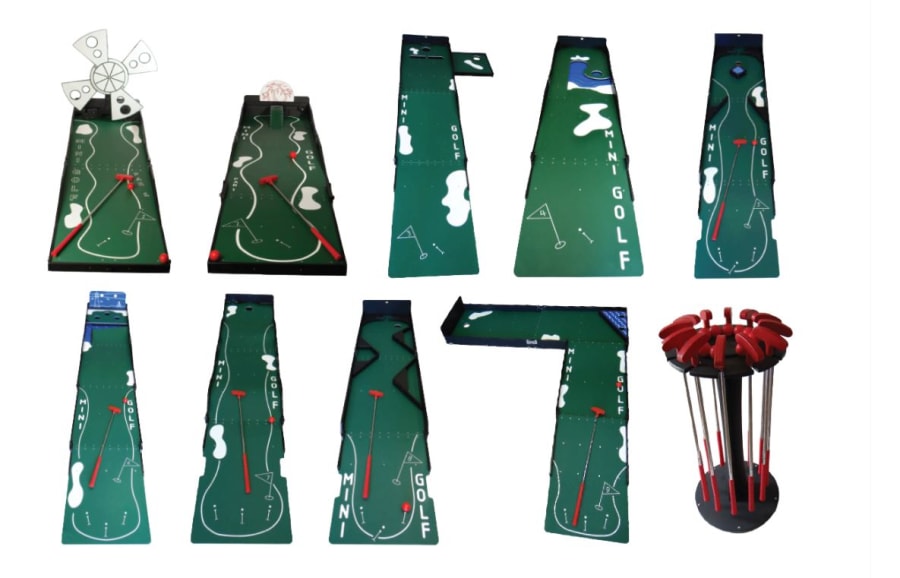 Our portable Crazy Golf/Mini Golf courses are fully weather resistant and can be used indoors or outdoors all year round.