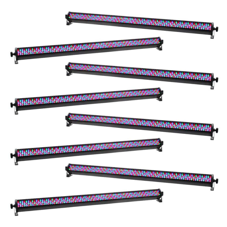 The RGB Power Batten contains 240 RGB LEDs divided into 8 segments. Onboard features include colour mixing to create soft washes from its rich colour palette, and chase programs controlled in auto mode or activated by music. Several different chase programs are included and can be selected by the control panel along with brightness and speed.