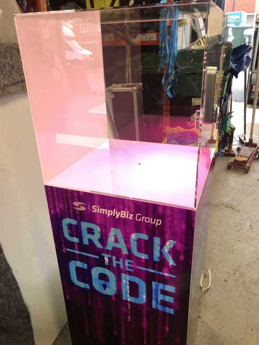 Place a prize in the beautiful acrylic safe and invite guests to crack the 4 digit code. Either by allowing guests to pick a code from a number of predetermined possible codes (including the winning code), sending potential customers a code to come and try at a product launch, allowing guests to try the last 4 digits of their phone number on their business card (great way to harvest cards and contacts) or allow guests to simply try a 4 digit number. All of these options have worked depending on your type of event.