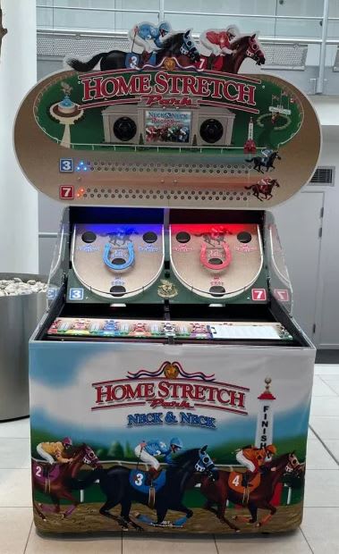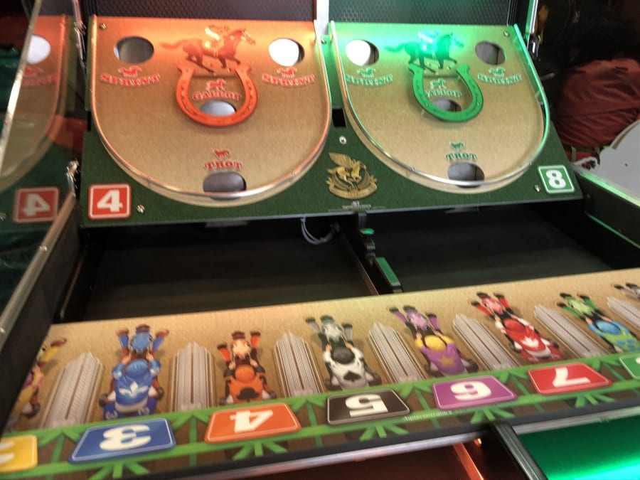 Introducing our Bounce-a-Ball Horse racing competition. Like the roll-a-ball derby, this new, modern alternative adds more skill and interaction by bouncing the ball to get your ball through the various target holes.