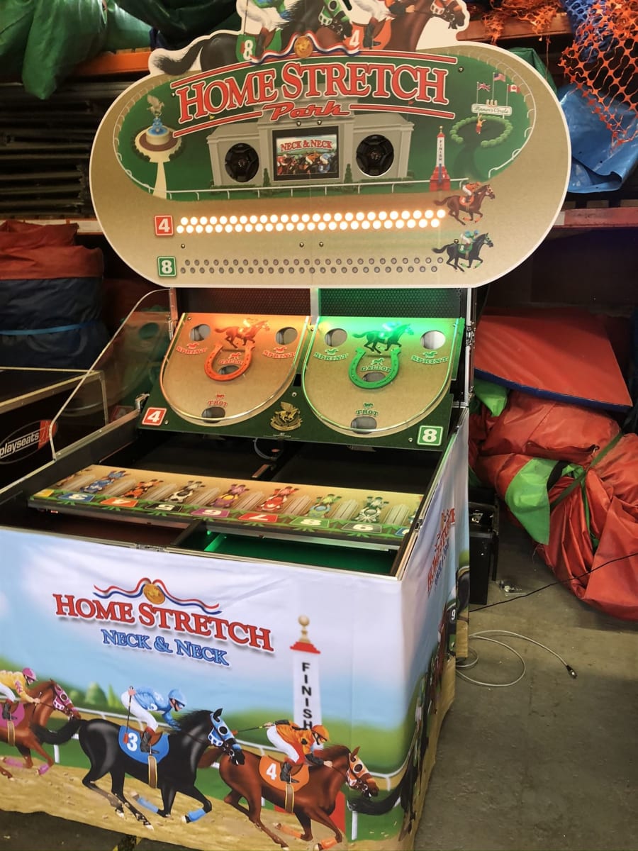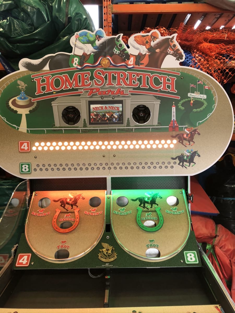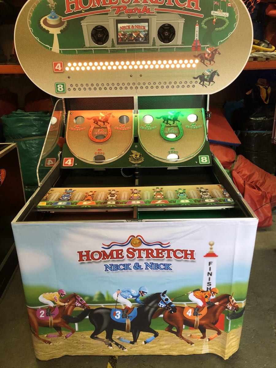 Branding for Home Stretch Horse Racing Hire -Printed Bottom Board £95 (We can retain this for future events free of charge - please note we remain the owners of this)Optional extra Score board branding - Top £29 full front wrap £69(Please note branding includes the purchase of sticker transfers that are suitable only to be used on the machine for one hire period)