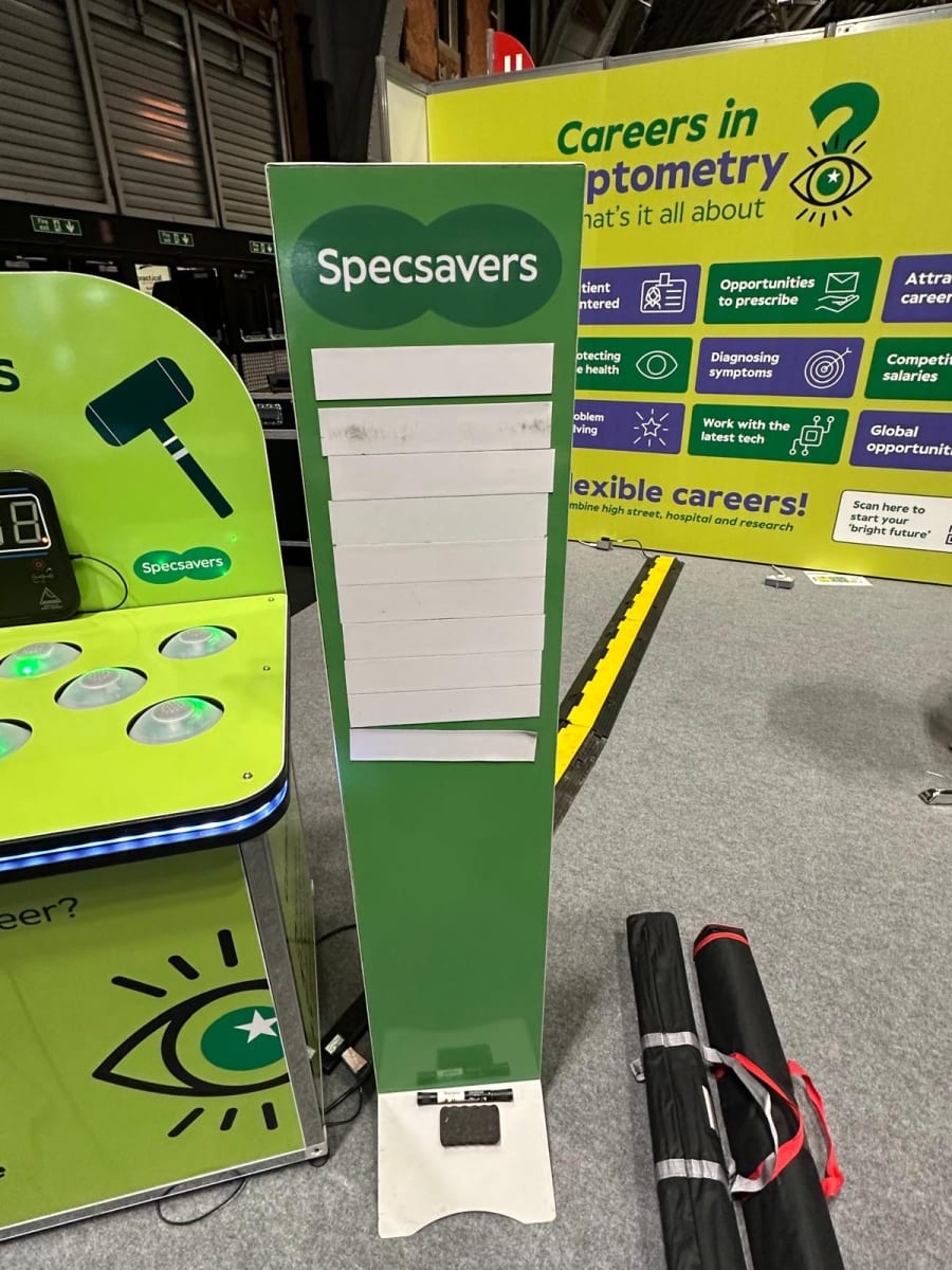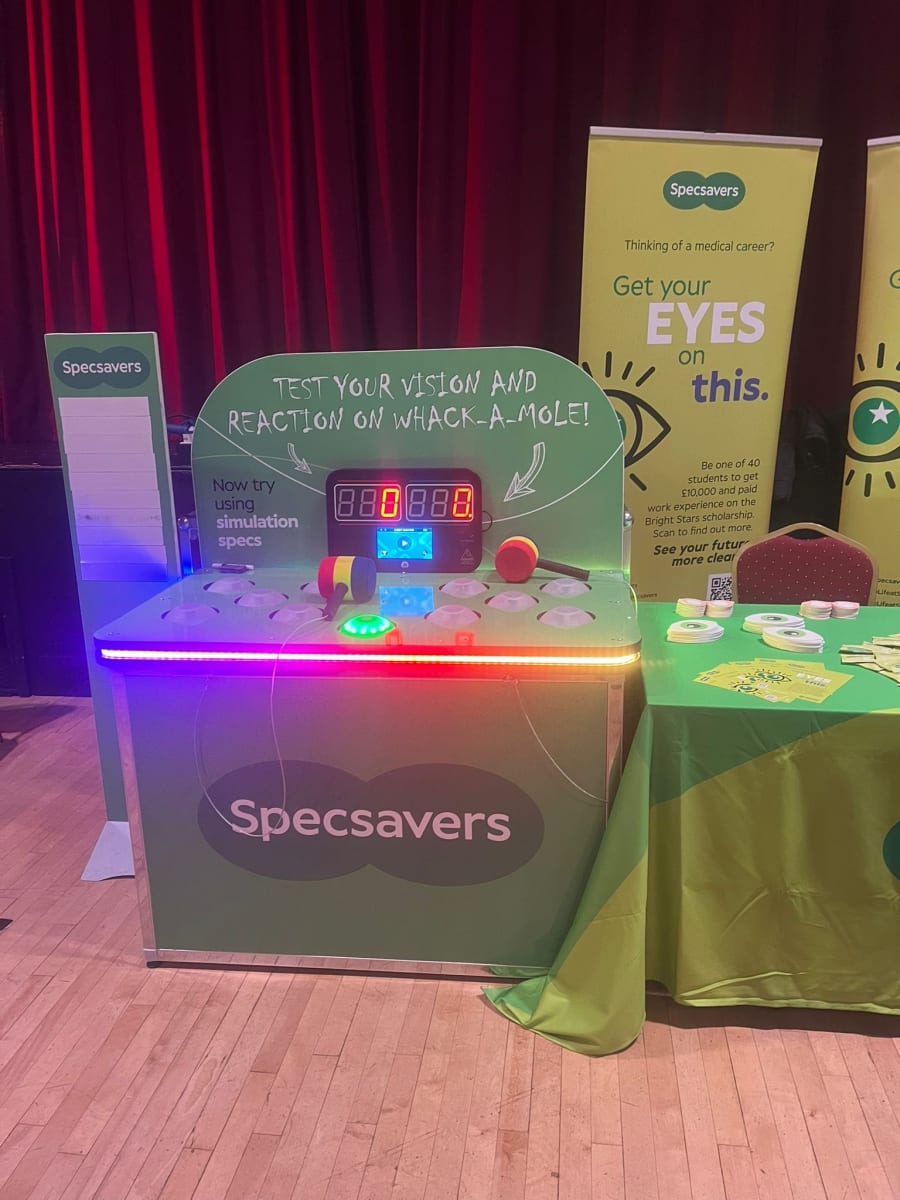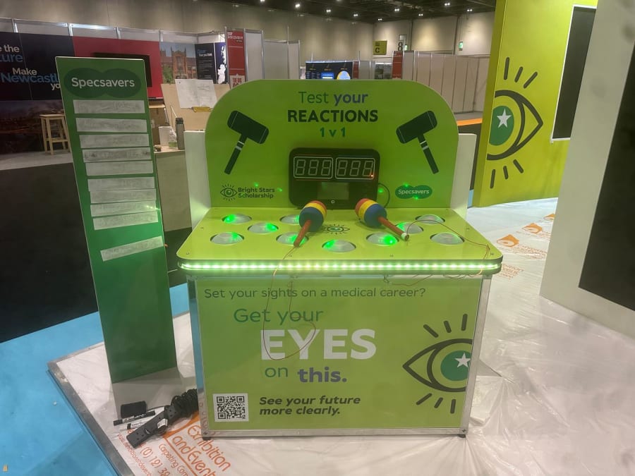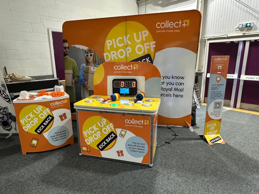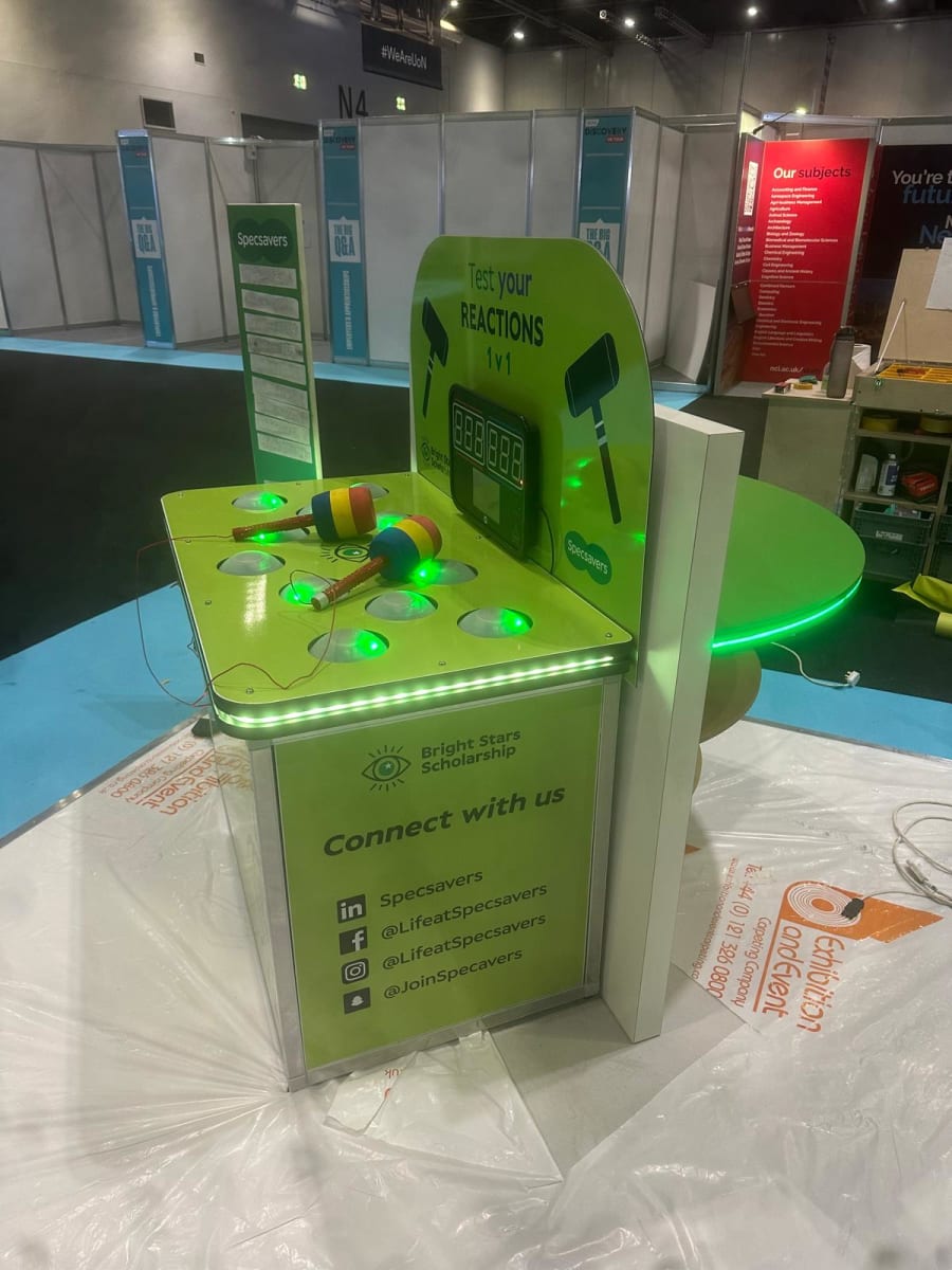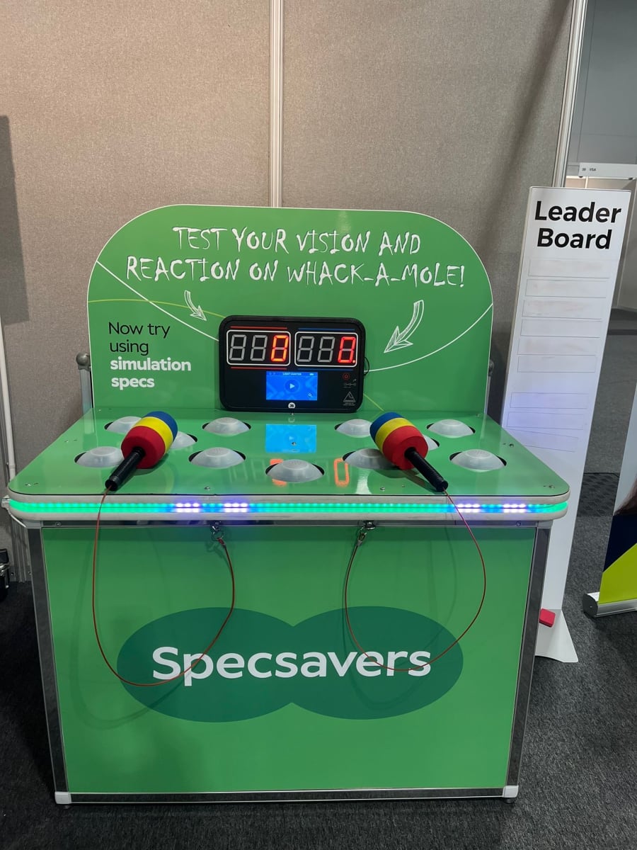 The Whack a Mole unit can be fully branded with your company logo, colours, campaign messaging, or product launch graphics. The front panel, side panels, and playing surface are all brandable. Check our gallery for examples of previous exhibition branding work. Everything is designed, printed, and applied by our in-house team – not outsourced.