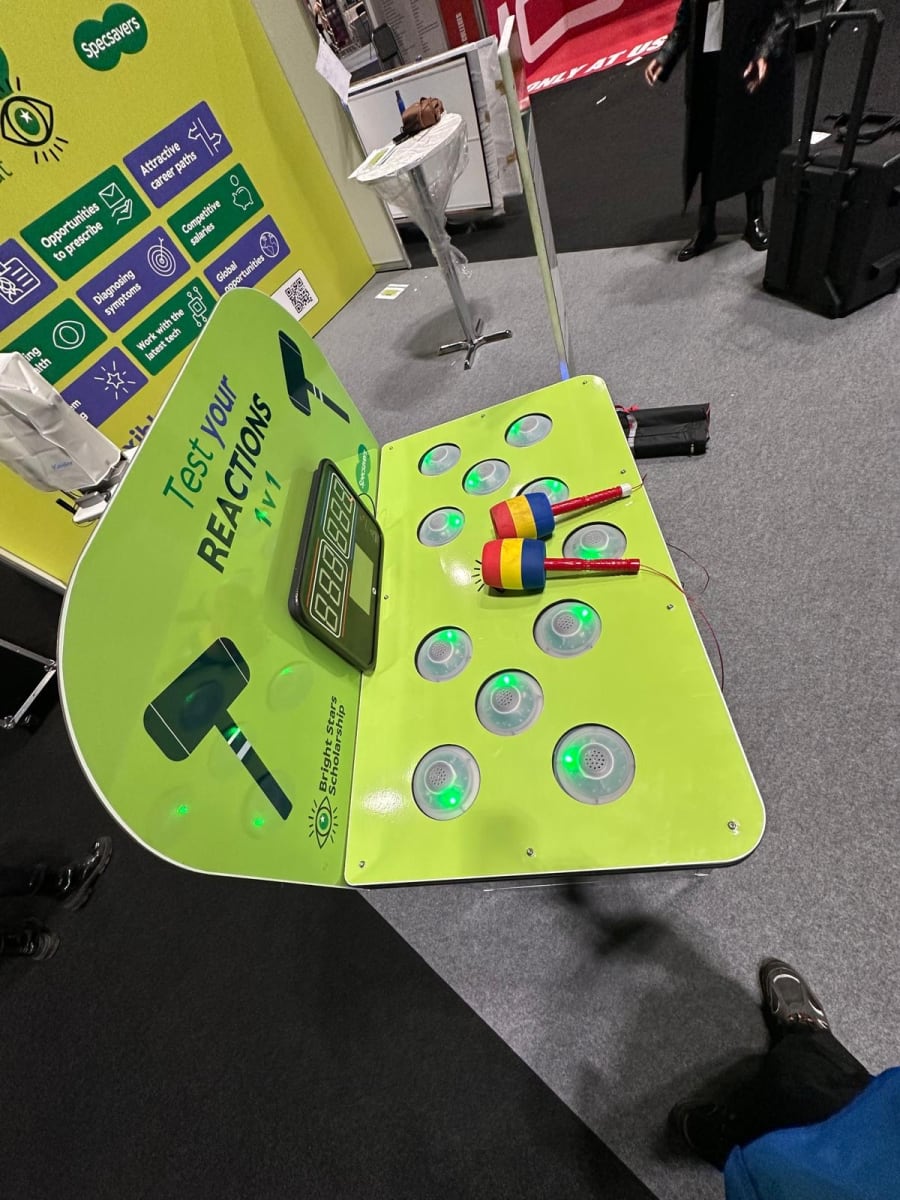 The electronic Whack a Mole is a 2-player head-to-head game where players hammer LED-lit moles as they pop up at random. Rounds last ~30 seconds with digital scoring, giving you up to 90 plays per hour. We’ve supplied these on exhibition stands at the NEC, ExCeL London, and Manchester Central, and they consistently pull visitors off the aisles and onto your stand.
