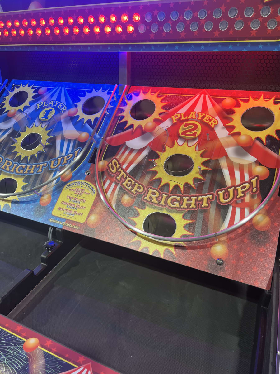 Aim for the higher scoring holes and race your opponent to the finish line. As you bounce your balls, see the points you are scoring along the race lights, with your opponents’ lights competing to the finish line.
