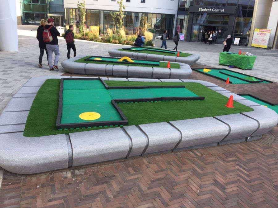 Our portable Crazy Golf/Mini Golf courses are fully weather resistant and can be used indoors or outdoors all year round.