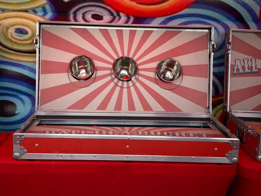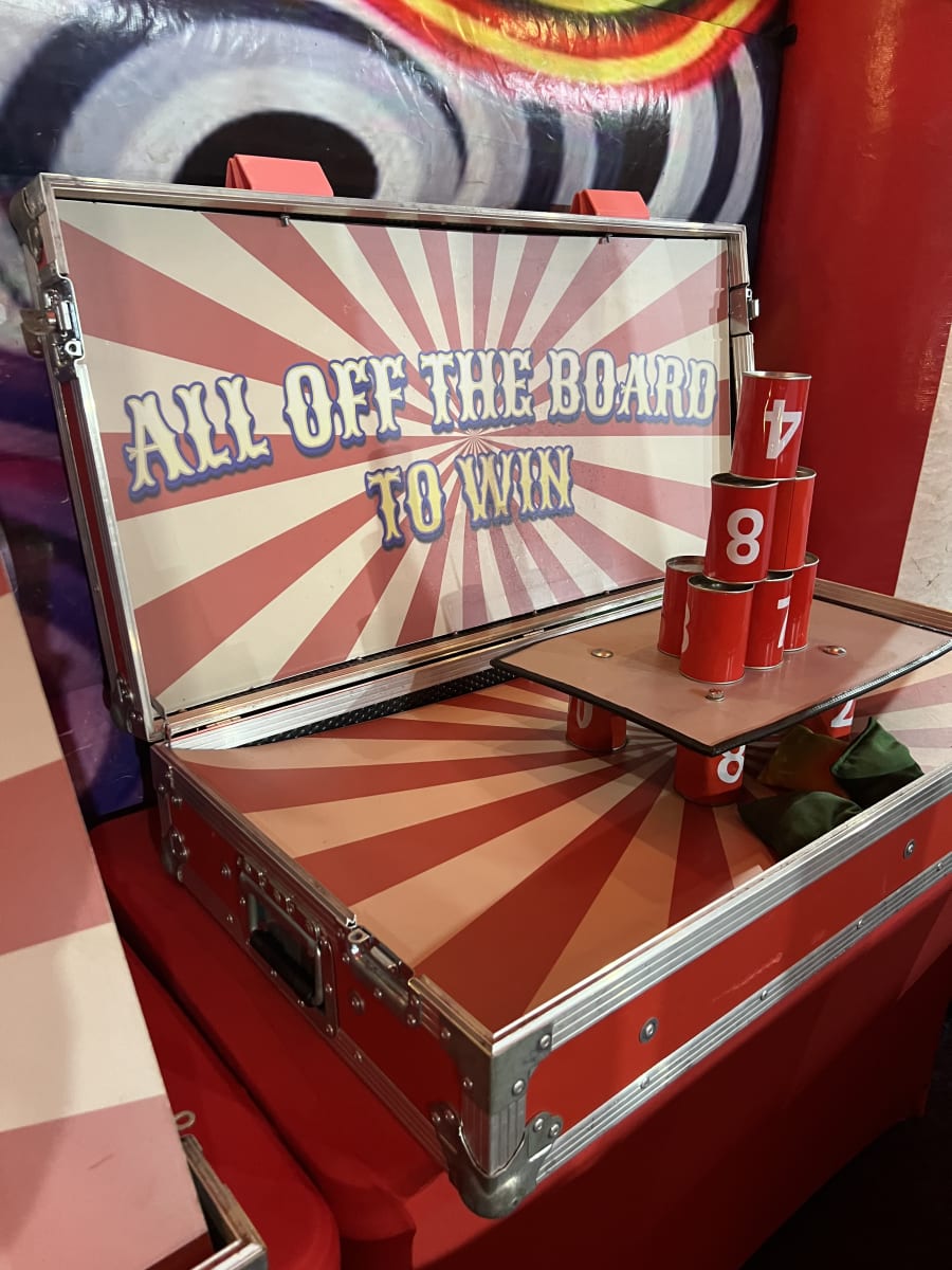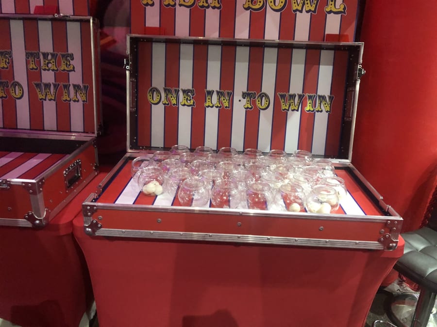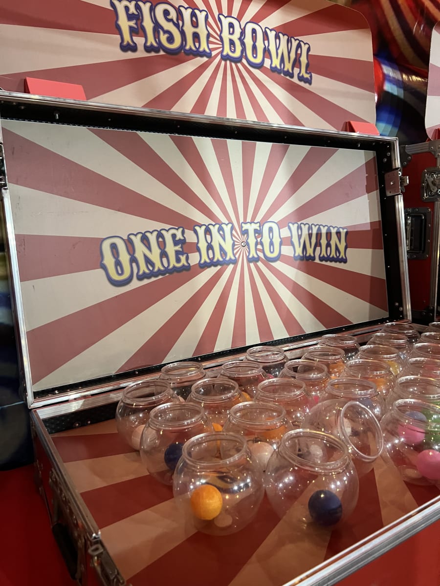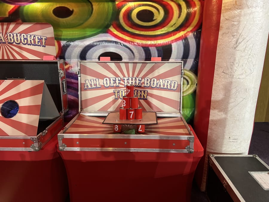One of our new items to DB Entertainment, this striking Carnival Fun Fair Stall creates a fun, exciting and competitive atmosphere. With 4 games to play alongside your competitors, fish bowl, ring toss, ball in a bucket and tin can alley! Exciting fun for families and children.