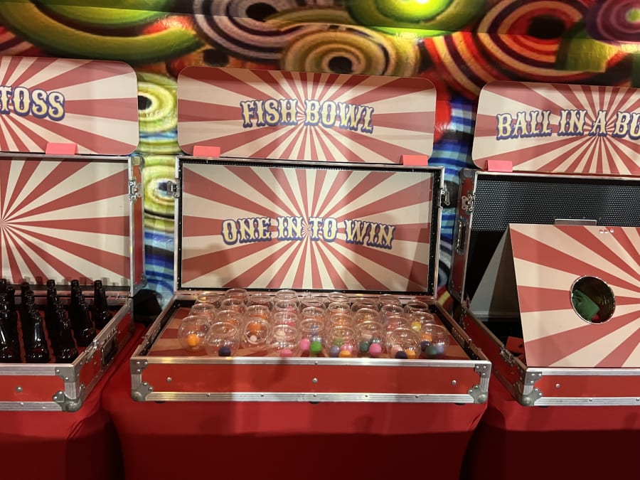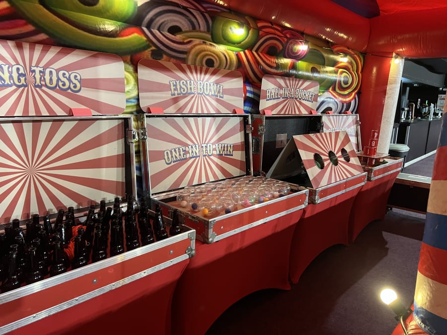 Our fairground stalls are unique, each one is visually striking with bright banners to draw your guests into play and can be used inside or out.
