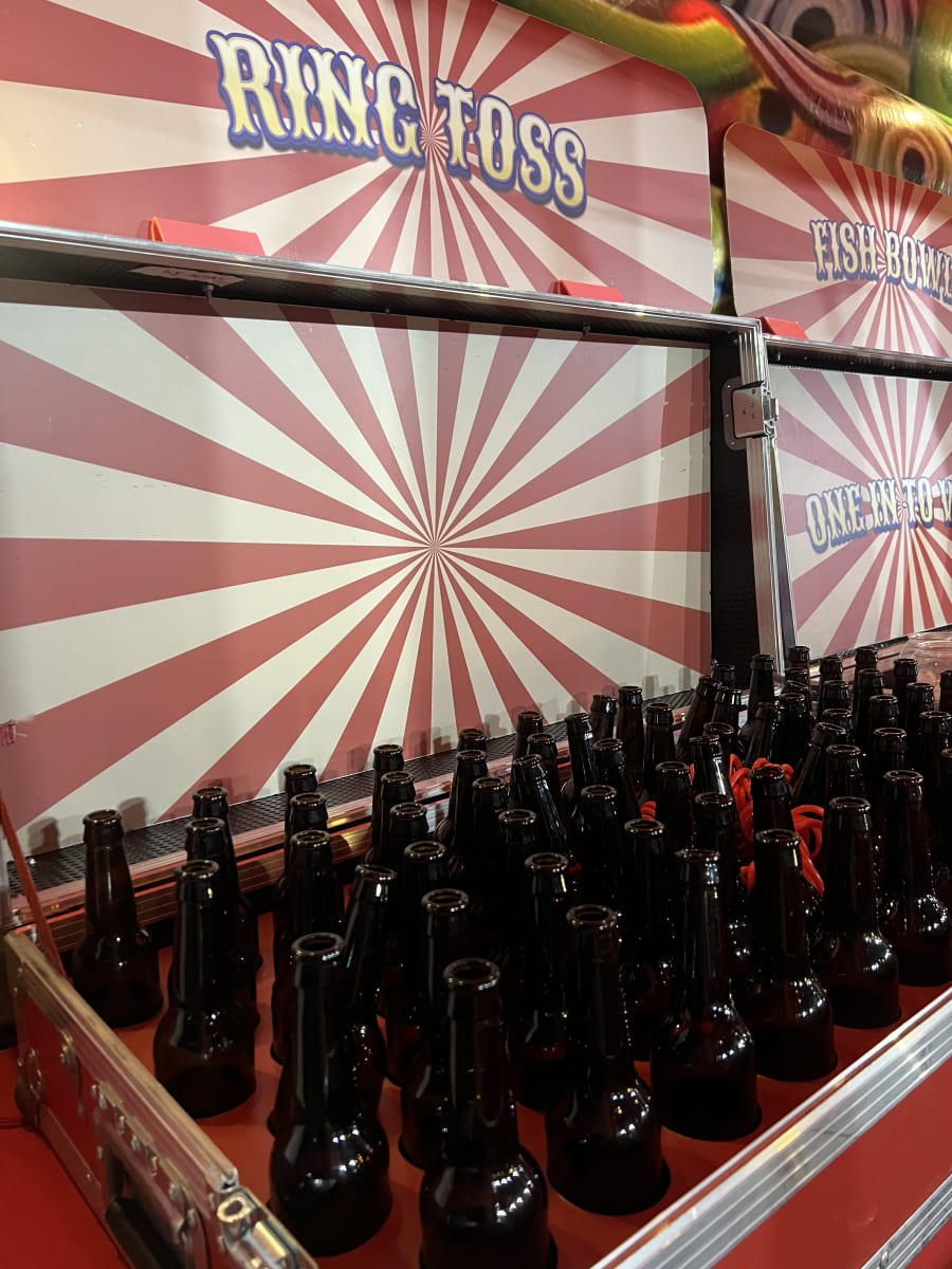 Ring Toss - the classic fair ground competition! Get your ring around a bottle to be able to claim a prize. Take your time and concentrate.