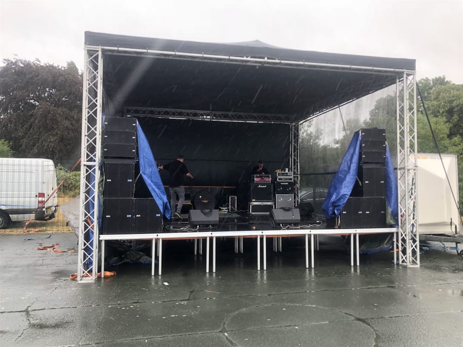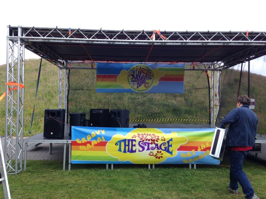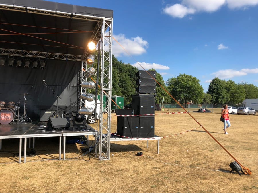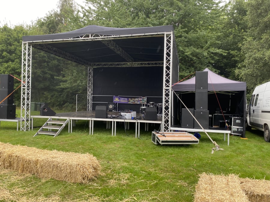 This stage can accommodate up to a 5 piece band and up to 15 singers, we also hire full PA including Line array systems, lights and audio technicians.